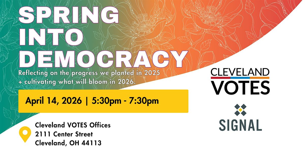 Join Cleveland VOTES for Spring into Democracy, our annual community gathering where we will reflect on the work we did in 2025 and prepare for the 2026 midterm election year. This event is both a look back and a roadmap to see what we grew last year and to discover what to plant next.