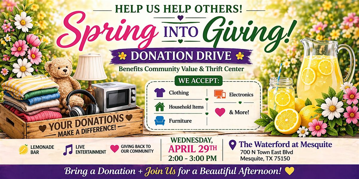 Get ready to celebrate spring with us at the Spring Into Giving Garden Party! This in-person event is all about fun, friendship, and a bit of giving back. We are asking for donations of clothing, household items, electronics, etc. to benefit Community Value and Thrift Center in Forney. We will have a lemonade bar with several flavors to choose from as well as some live entertainment on our back patio. Don’t miss out on an afternoon filled with laughter, refreshing drinks, and great company. Put your spring cleaning to good use!