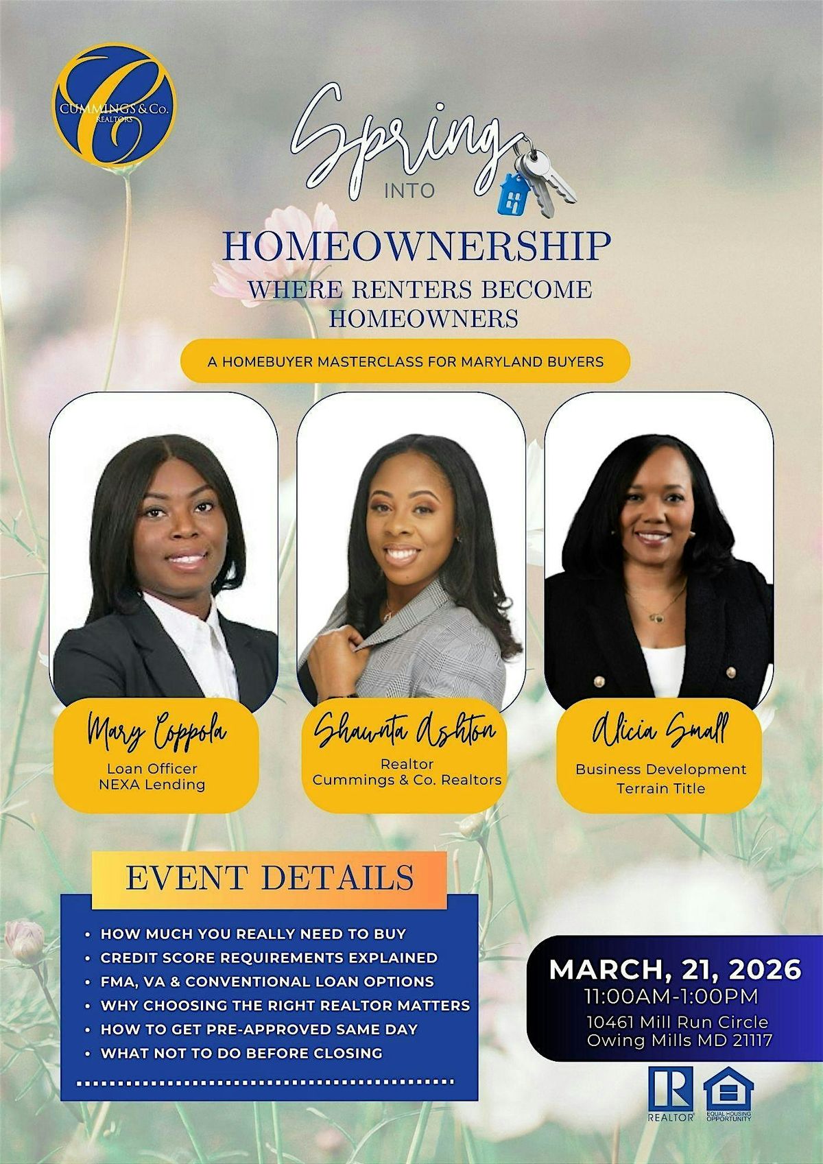 Ready to make your dream homeownership a reality? Join us for an exciting in-person event where you’ll get all the tips, tricks, and advice you need tojumpstart your homebuying journey. Meet experts, ask questions, and connect with others who are just as excited as you are. Don’t miss out on a fresh start this spring!