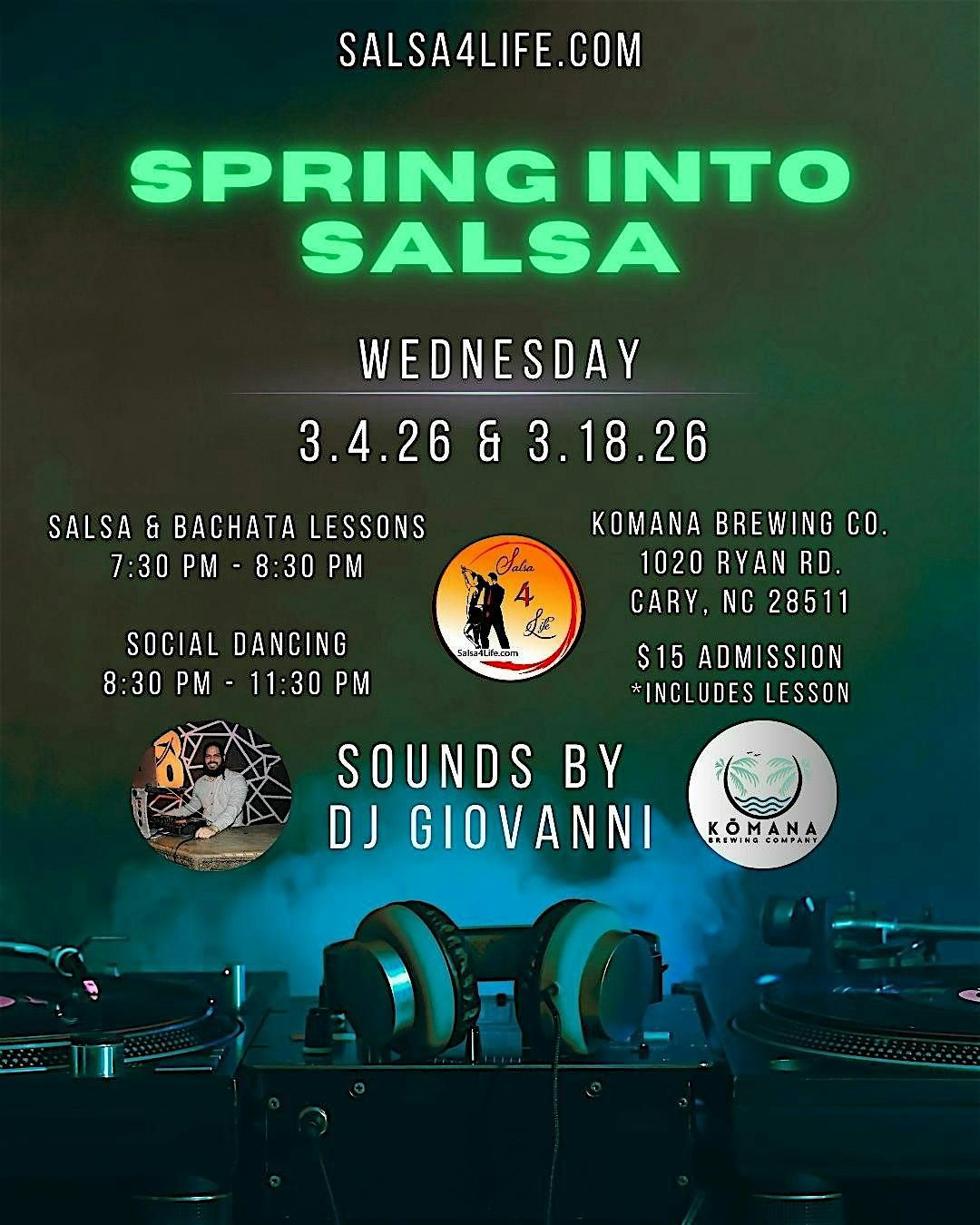 Join us on March 4, 2026 at 7:30 PM for a fun-filled evening of salsa music and dancing.