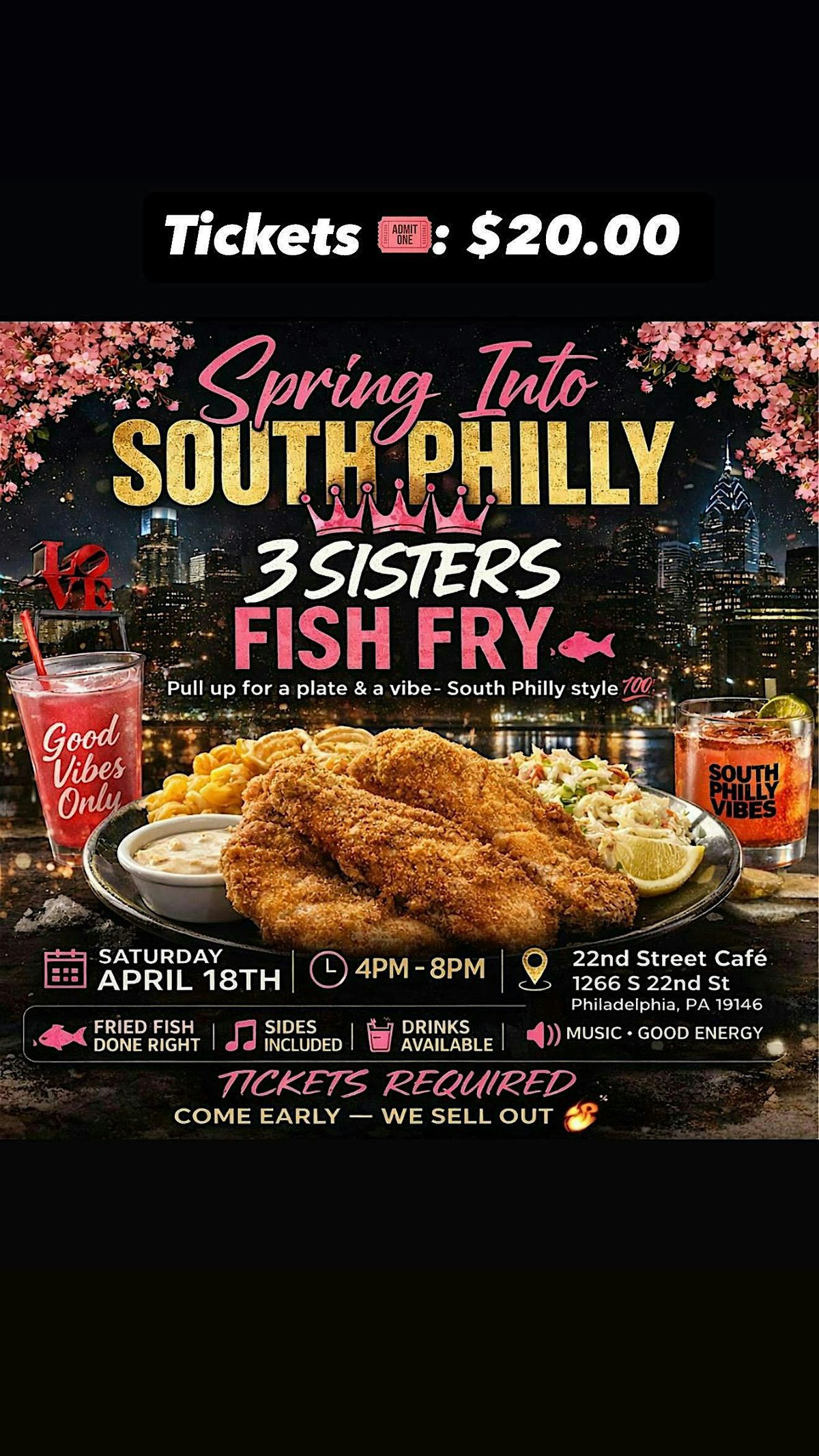 Get ready to dive into some serious flavor at the Spring Into South Philly 3 Sisters Fish Fry! This in-person event is all about good vibes, great company, and mouth-watering fried fish cooked to perfection. Whether you're a local or just passing through, come join us for a fun, casual gathering that'll have you craving seconds. Don’t miss out on the chance to celebrate spring with tasty eats and new friends!