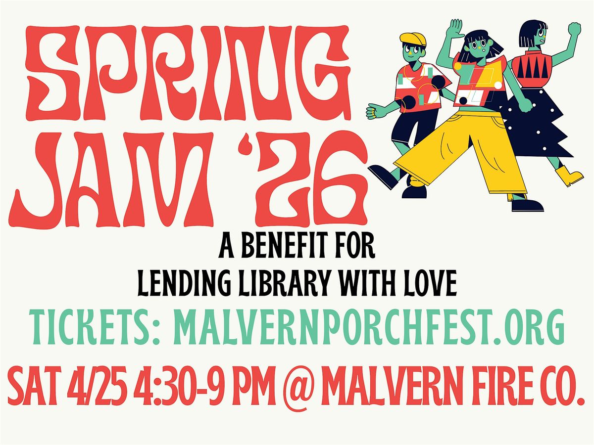 Malvern Porchfest is excited to announce the return of Spring Jam this April! We're so pumped to welcome The Full (performing 2 sets) and Juliana Danese to the stage as we come together as a community to raise funds for The Lending Library with Love. The Lending Library is a bookmobile that services local neighborhoods to help spread a love of reading to kids in our community. We will also be joined by Locust Lane Craft Beer and Mobile Mess Hall. Can't wait to see you this spring!