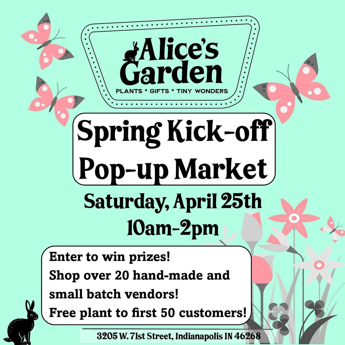 Enter to win prizes and the first 50 customers at Alice's Garden receive a free plant!