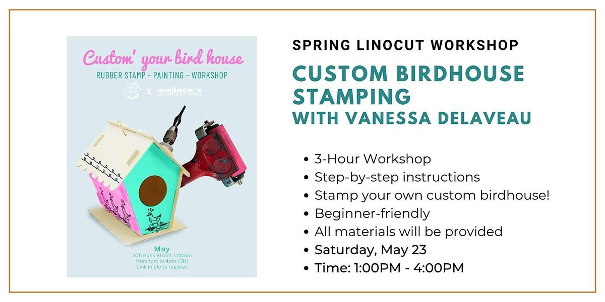 Join us for a fun and creative linoprint workshop where you’ll explore the art of stamp-making and bring your designs to life by customizing your very own wooden birdhouse.