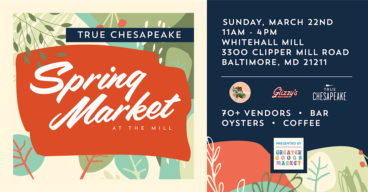 Join us for Spring Market at the Mill 🌸✨ a collaboration between True Chesapeake and Greater Goods Market.
