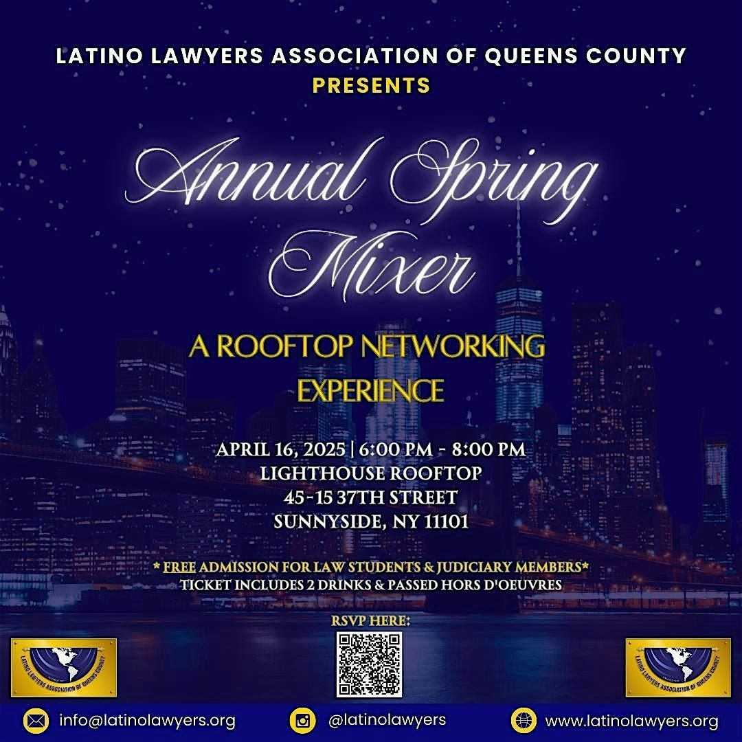 Welcome to the Spring Mixer! Join us for a fun-filled evening at the Lighthouse Rooftop. Get ready to mingle and network with other Latino attorneys, Judges and law students in a lively atmosphere. This is the perfect opportunity to make new connections and enjoy the beautiful views from the rooftop. Don't miss out on this exciting event - mark your calendars now!