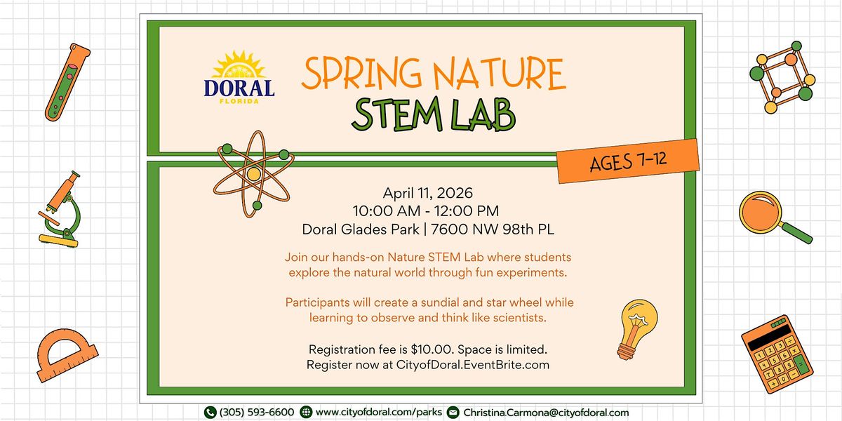 Come join us for a fun and educational event at Doral Glades Park! Explore the wonders of nature while diving into the exciting world of STEM. Our hands-on activities will engage young minds and spark curiosity about the environment.