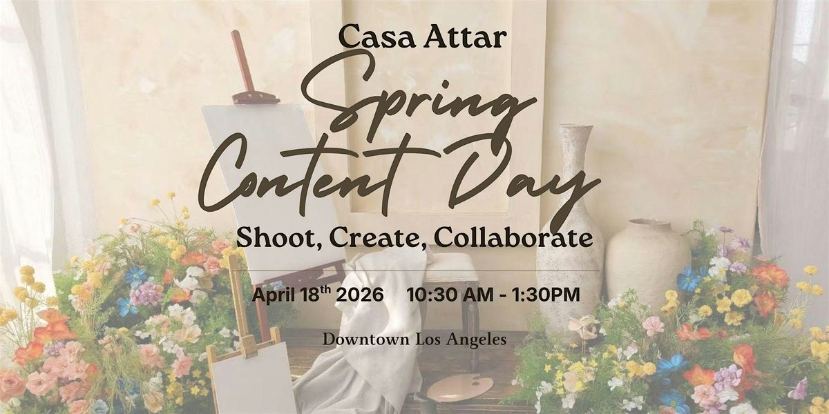 Spend your Saturday morning creating, shooting, and collaborating at Casa Attar’s Spring Content Day. From 10:30 AM – 1:30 PM, photographers, models, and creators gather inside the studio for a relaxed session focused on capturing fresh content in a fully styled natural light space. The studio will be set with our seasonal spring installations, offering multiple shooting areas perfect for portraits, fashion, lifestyle, and social media content. Move freely through the space, rotate between sets, and collaborate with other creatives throughout the session.