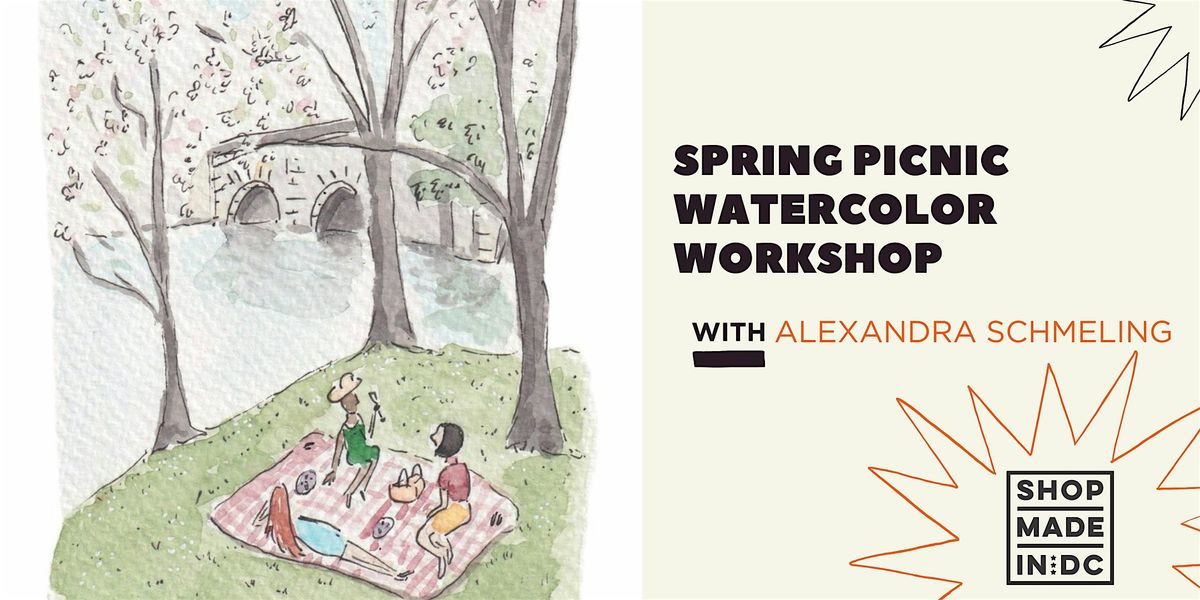 Celebrate Spring in the DMV with this guided 2-hour watercolor class. You will be provided with a pre-drawn image of a Spring picnic alongside a river and some cherry blossom tress.