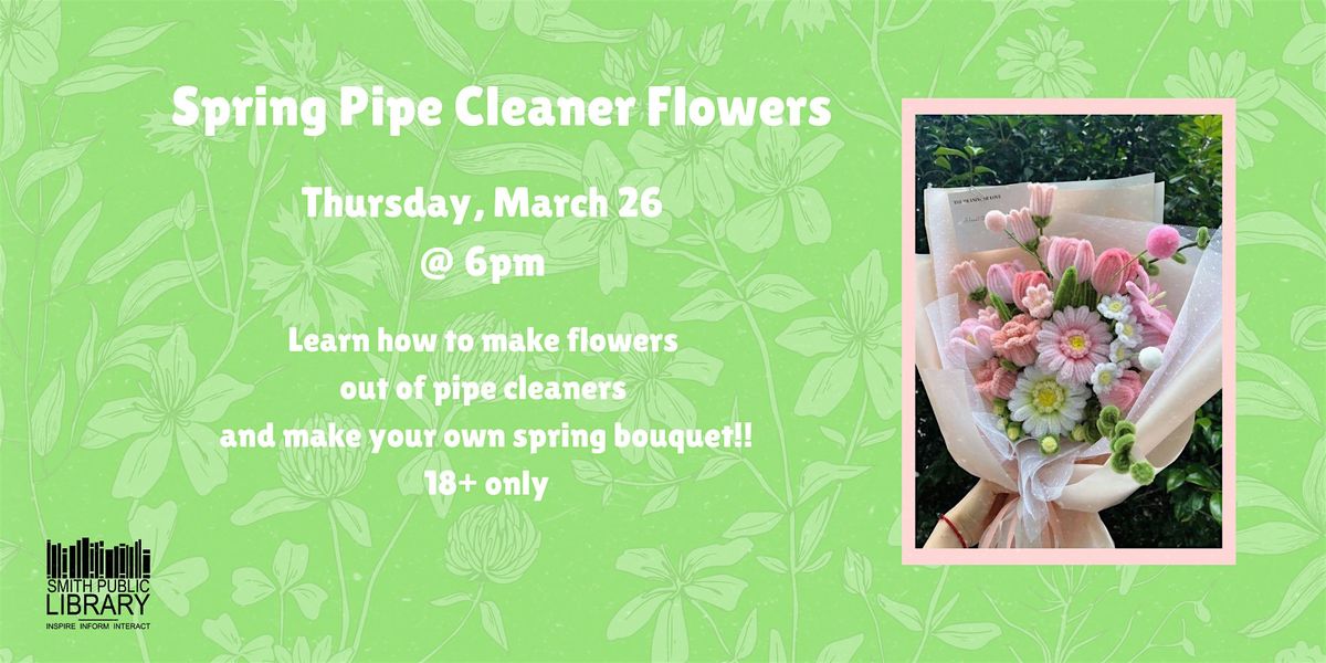 Come join us at Rita & Truett Smith Public Library for a fun and creative workshop on making spring flowers out of pipe cleaners. All materials will be provided.