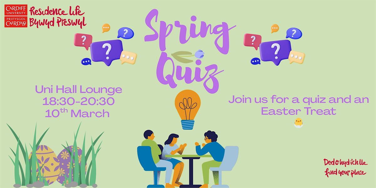 Love quizzes? Come down to the University Hall Lounge on the 10th March at 18:30 for some Spring trivia!