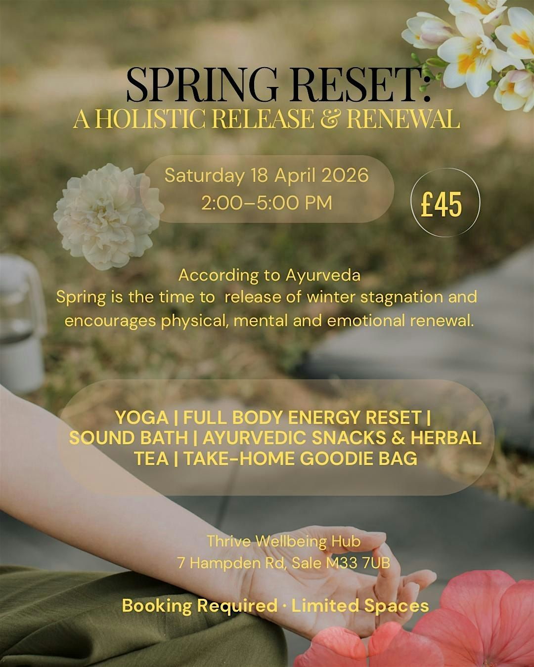 Ready to shake off the winter blues? Our Spring Reset event is the perfect chance to refresh your mind and body. It's an in-person gathering where you can connect, recharge, and embrace the new season with good vibes and great company. Don’t miss out on this awesome opportunity to hit the reset button. We can't wait to see you there!