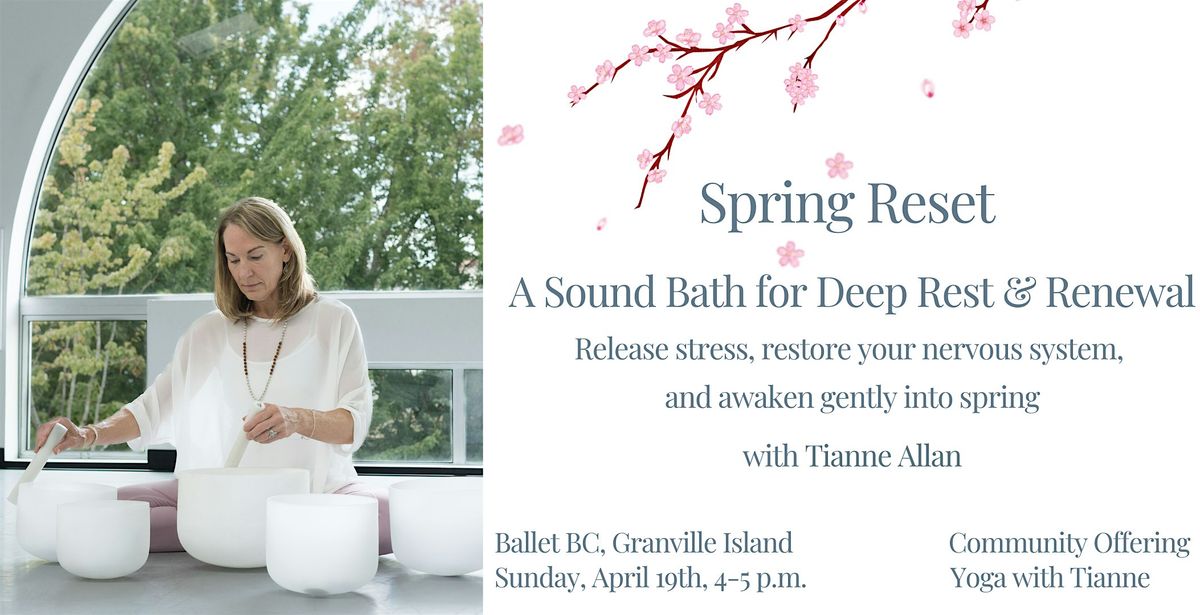 This Spring Reset Sound Bath offers a deeply restorative experience designed to support the nervous system in moving out of stress and into a state of calm and balance.