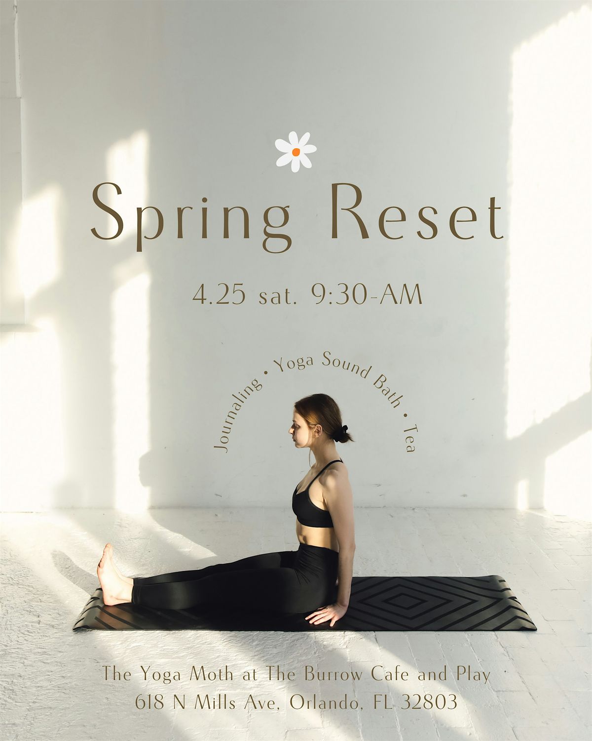 Spring Reset  - Yoga   \u2022  Sound Bath  \u2022 Tea \u2022 Journaling