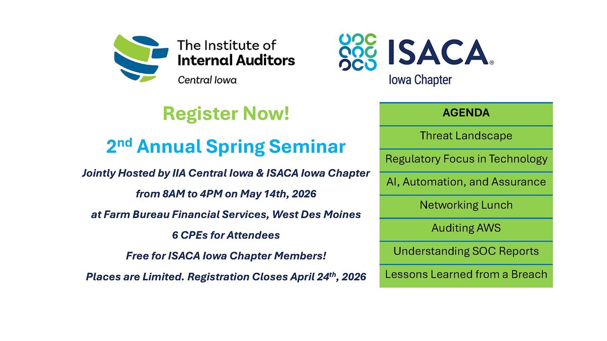 Jointly Hosted by IIA Central Iowa & ISACA Iowa Chapter