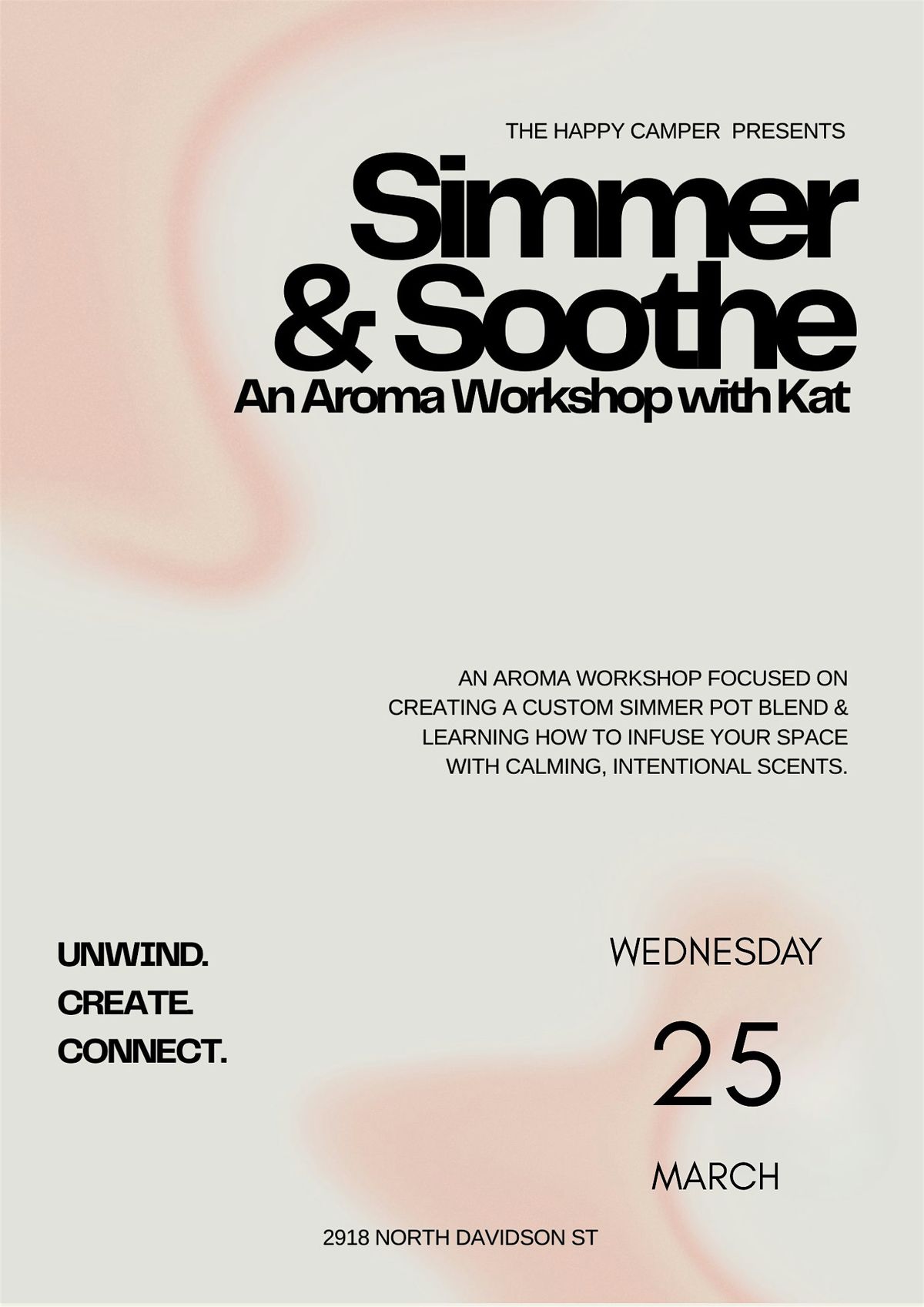 Join us for a cozy, hands-on aroma workshop centered around the art of the simmer pot. Together, we’ll explore how scent shapes mood, memory, and atmosphere while crafting your own custom simmer blend to take home.