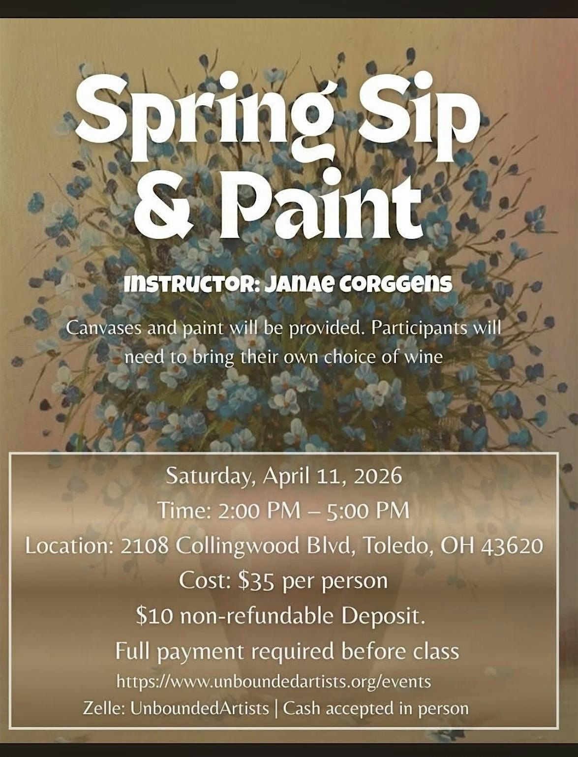Join me for a Spring Sip & Paint on April 11th! We’ll be creating a beautiful vase of flowers, perfect for beginners—no experience needed