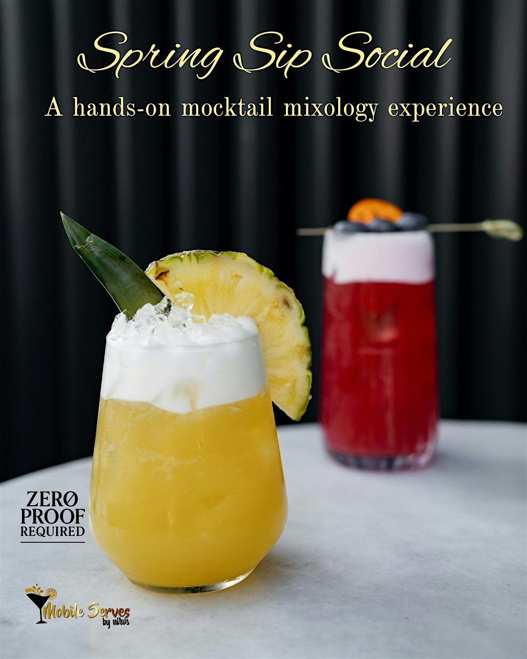 Hosted by Nirva of Mobile Serves by Nirvs and Kevin of Zero Proof Required, this hands-on mocktail making class is your perfect spring reset.