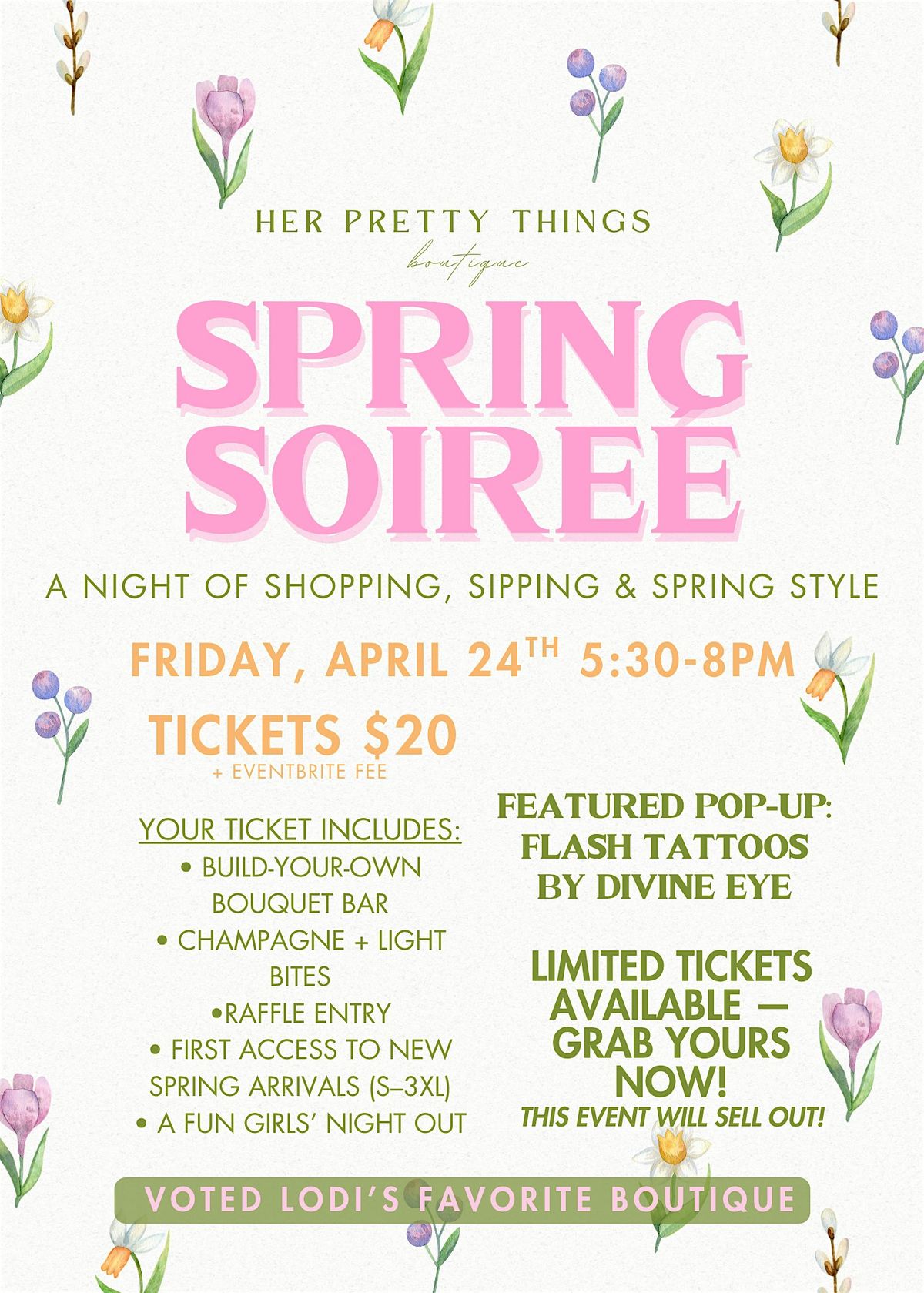 Join us for an evening of shopping, sipping, and celebrating all things spring at our Spring Soirée.
