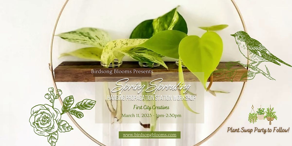 Spring is sprouting! Now is the time to propagate those indoor plants on your wishlist. We will be building a gorgeous, locally milled cedar hanging plant cutting station, perfect for watching your cuttings take root in water. This workshop will be followed by a plant swap party where you’ll be sure to take home some extra special finds! Grab a friend, buy your tickets and join Birdsong Blooms at First City Creatives on March 11th from 1-2:30pm.