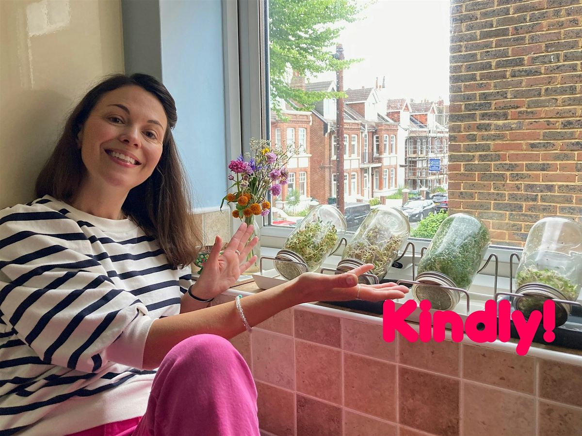 Perfect for all kinds of living spaces, sprouting and sprouted micro shoots add a wealth of plant powered points to your diet, and they are a joy to grow during all year round . Join me for Kindly's New Growth community talk this April and learn how to start sprouting and growing your own delicious planty goodness at home. I truly believe organic home sprouting is a way for us to collectively boost our vitality and thrive in our local urban neighbourhoods."