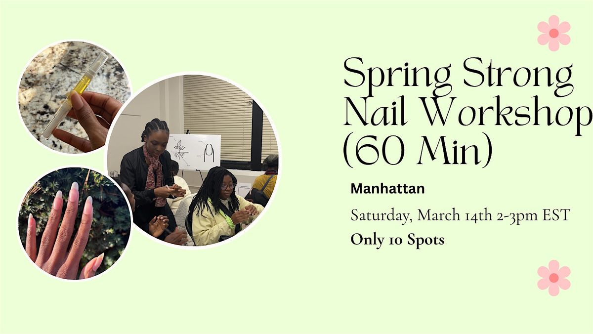 About the Event: Step into a beautiful space and learn the first secret to getting strong beautiful, natural nails that make you feel feminine. Work step by step with a nail expert to strengthen your nails so you get the feminine nails you desire. No experience is needed, and products will be provided.