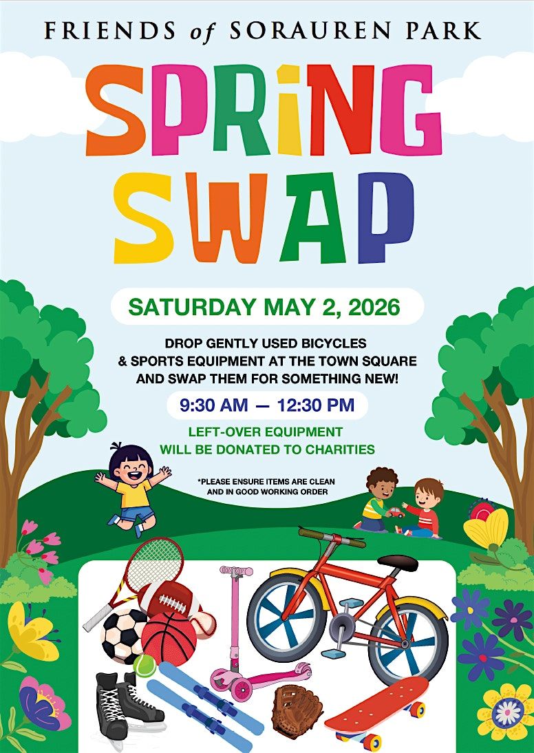 It’s all happening at Sorauren Park Town Square, so bring your swaps and your smile. Don’t miss out on this awesome community event—see you there!