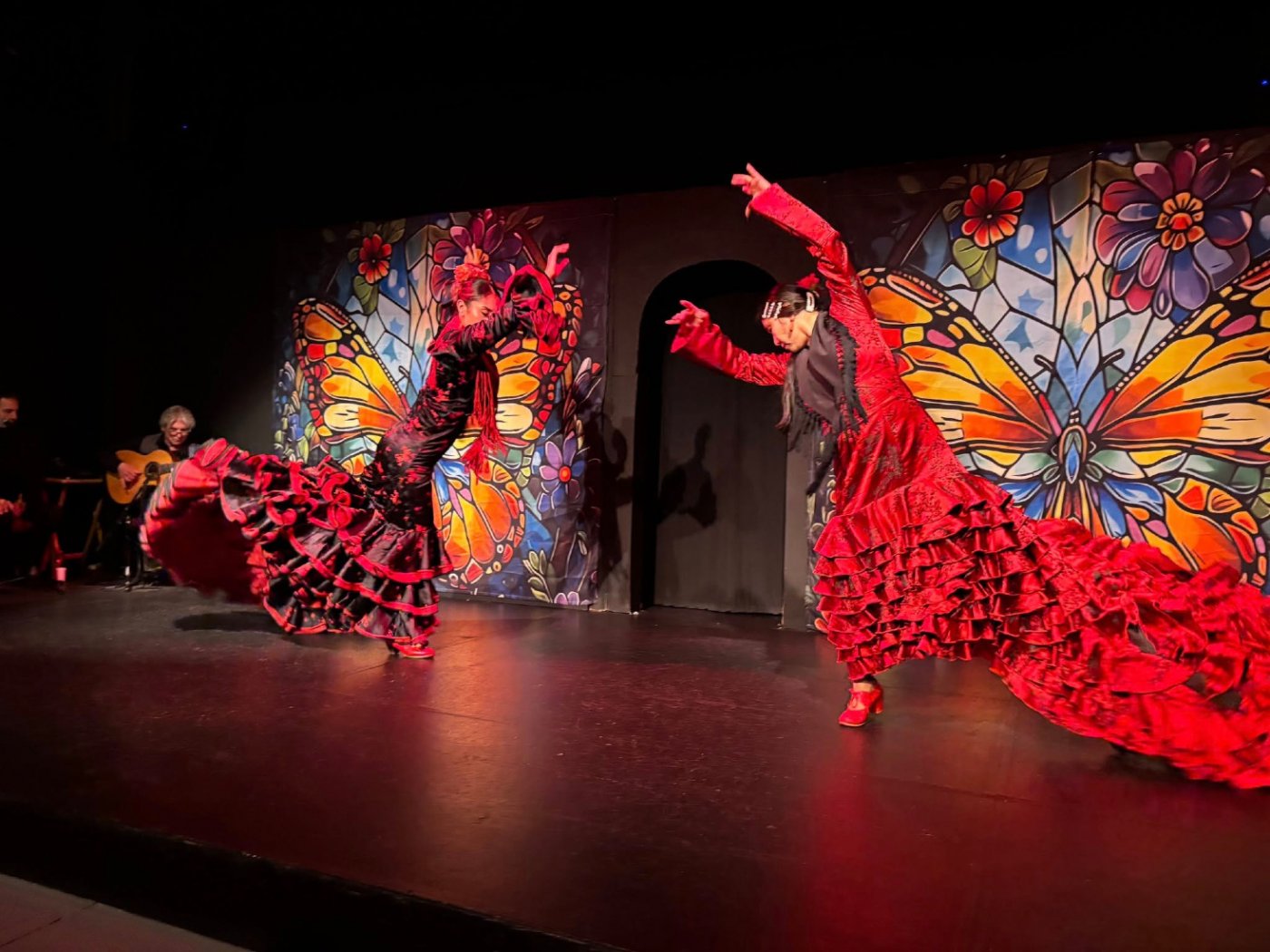 At the heart of the evening is the internationally celebrated husband-and-wife duo Chuscales and Mina Fajardo. Chuscales, master guitarist and musical director from Granada, Spain, carries the spirit of the legendary Sacromonte caves in every note. Mina Fajardo, artistic director, dancer, singer, and percussionist, lights up the stage with her fiery footwork, powerful presence, and deep emotional connection to flamenco.