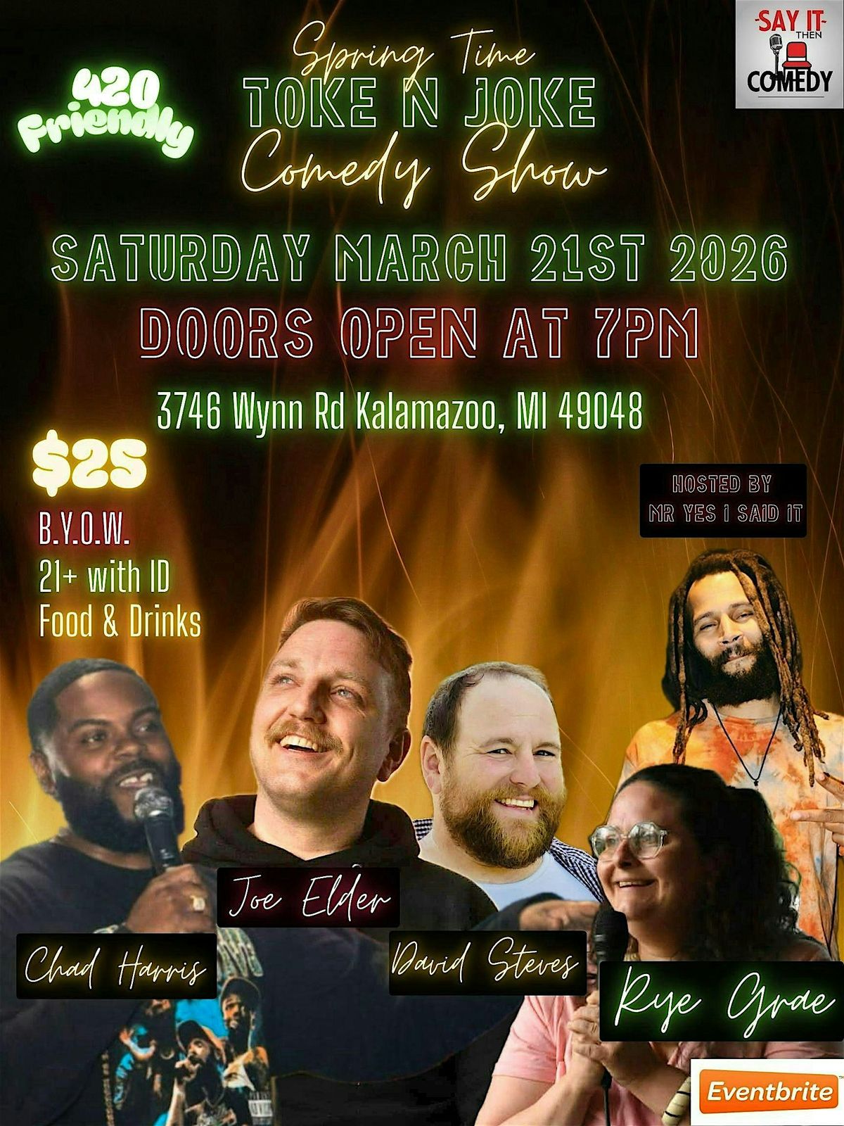 Come celebrate the green outside with the GREEN INSIDE! The temperatures are getting higher and you should be too! Get ready to laugh out loud at the Spring Time Toke N Joke Comedy Show! It’s an in-person event where good vibes and great jokes meet. Whether you’re here for the hilarious comedians or just to vibe with friends in a chill environment, this night promises tons of fun and plenty of smiles. Don’t miss out on the perfect way to kick off spring with some epic laughs!