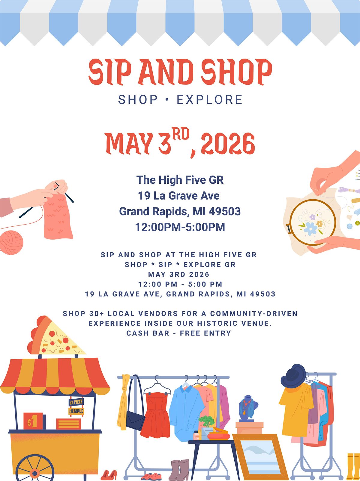 Join us at The High Five GR for a day full of good vibes, great finds, and fun sips! Browse a curated mix of unique vendors, support local makers, and treat yourself to something special (or a few things—we won’t judge 😉).