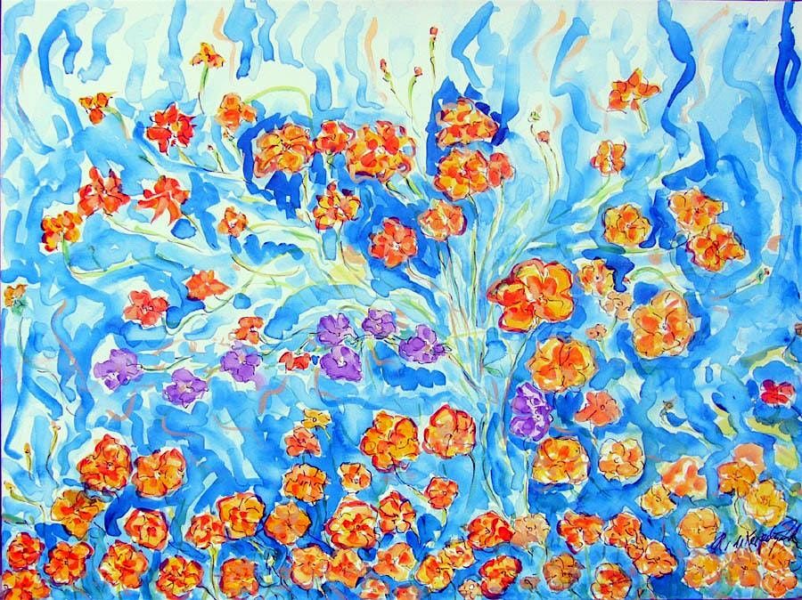 SPRING WILDFLOWERS OF ARIZONA by international artist Andrea de Kerpely-Zak known for her "Healing," impressionist florals. She has created a special series of wildflower artwork including Mexican Gold Poppies, African Daisies and more. Her floral artwork is published together with Georgia O"Keeffe.