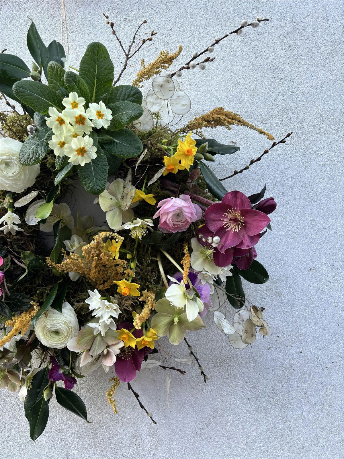 Embrace the Spring season and learn how to make a beautiful seasonal moss based Spring Wreath bursting with spring plants and bulbs, flowers and dried treasures, full of gorgeous colours!