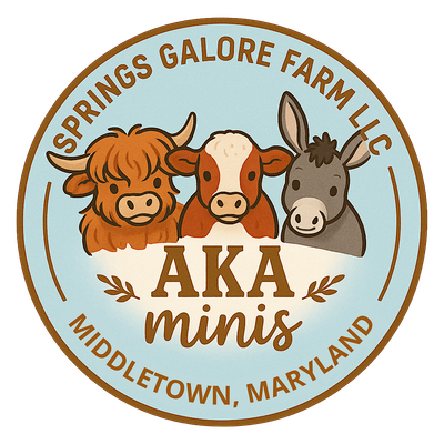 Celebrate the warm weather with a one-of-a-kind farm experience at Springs Galore Farm, home to AKA Minis, located in beautiful Middletown, Maryland. We are a family-run farm on 100 acres, raising laying chickens, beef cattle, and our beloved miniature Highland and Hereford cows—along with our friendly donkeys and goats.