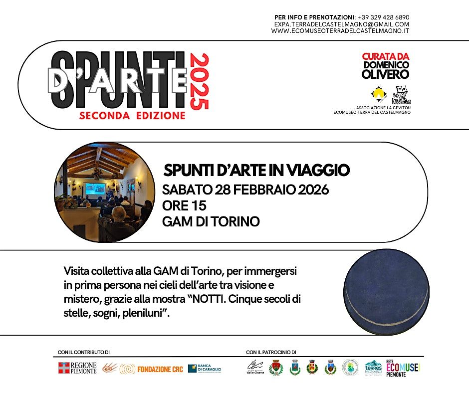 Come lo scorso anno, concluderemo con una visita fuori valle alla GAM di Torino, per godere di un'esperienza immersiva nei cieli dell'arte, tema che ci accompagnato in questi mesi.