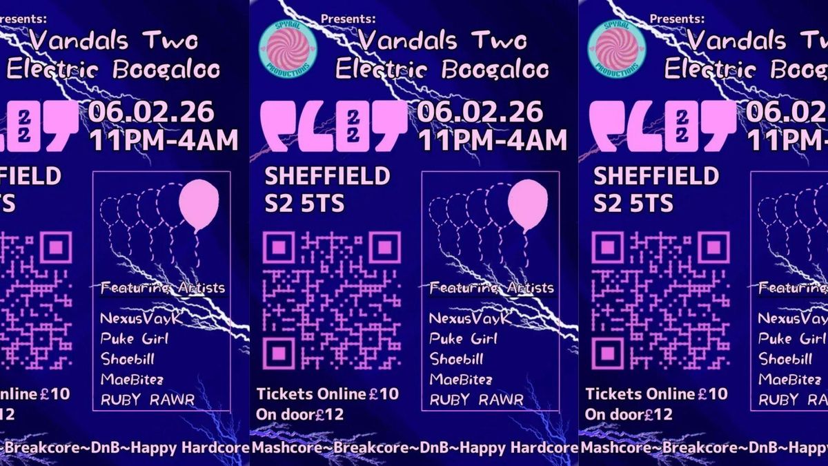 Welcome all delinquents and hooligans to a night of queer chaos!Back by popular demand, it's Vandals 2! With a brand new lineup plus our resident DJ Nexus, we're here to bring bounce and fun back to dreary old Sheffield. Grab your glowsticks and get ready for the 6th of February. It's gonna be electric!