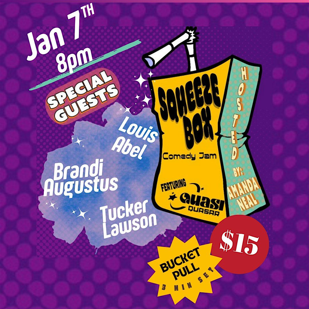 Squeeze Box Comedy Jam is a monthly showcase hosted at Swanson's Warehouse the first Wednesday of every month by comedian Amanda Neal.
