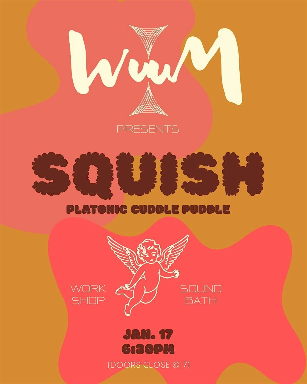 WuːuM is partnering with SNUG to host SQUISH! Because cuddling is scientifically proven to promote emotional bonding and reduce stress by increasing oxytocin, the hormone associated with safety, trust, and connection. It can also lower cortisol, heart rate, and blood pressure, supporting both emotional regulation and relaxation.