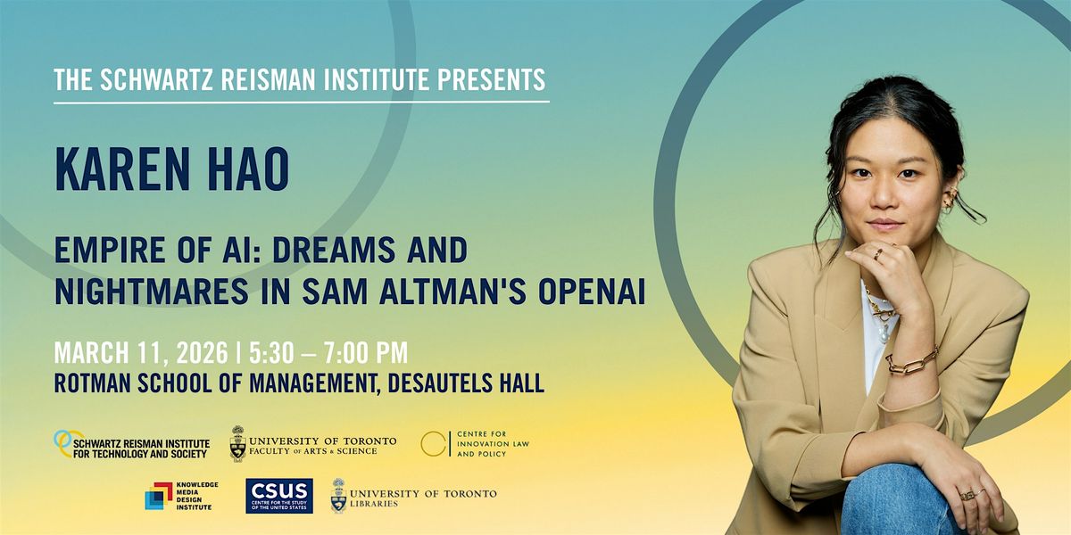 On March 11, 2026, the Schwartz Reisman Institute for Technology and Society will host an in-person conversation with award-winning journalist and former MIT Technology Review senior editor Karen Hao, author of the 2025 New York Times bestseller Empire of AI: Dreams and Nightmares in Sam Altman’s OpenAI. With AI governance, labor disruption, and geopolitical power struggles at the forefront of global conversations, this event offers a timely opportunity to engage with Hao’s investigative reporting on the unchecked development of AI combined with the rise of a few dominant tech firms.