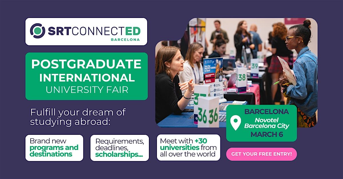 Whether you’re considering a Master’s degree or an MBA abroad, this event offers a unique opportunity to explore a wide range of postgraduate options in one place. Hosted at Novotel Barcelona City, the fair allows you to compare programs across multiple countries, discover new study destinations, and speak directly with university representatives.