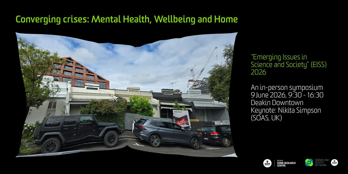 Housing, home and notions of place and inextricably tied to mental health and wellbeing. Colleagues across fields and the public are invited to join the the SSN and a score of leading researchers for a symposium that approaches these converging themes across four interdisciplinary panels. A keynote by Associate Professor Nikita Simpson (SOAS, UK) will open the day, and the audience will be invited to take part in the unfolding discussion that includes a session with Deakin's HOME researchers, and a closing roundtable.