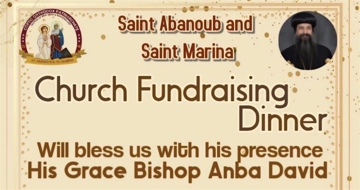 St. Abanoub and St. Marina Church warmly invite you and your family to join us for a special Church Fundraising Dinner, filled with fellowship, love, and community. We are honored to be blessed by the presence of His Grace Bishop Anba David.