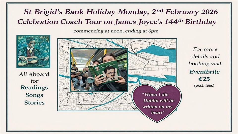 This St Brigid’s Bank Holiday Monday we’ll take to the road in celebration of James Joyce’s 144th birthday and explore the city and suburbs that shaped his life and work.