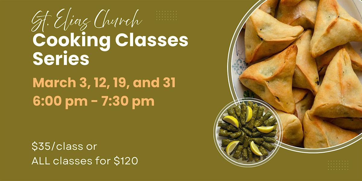 Join us this March for a hands-on cooking class series. Classes take place on 3/3, 3/12, 3/19, and 3/31. From 6:00 pm - 7:30 pm.