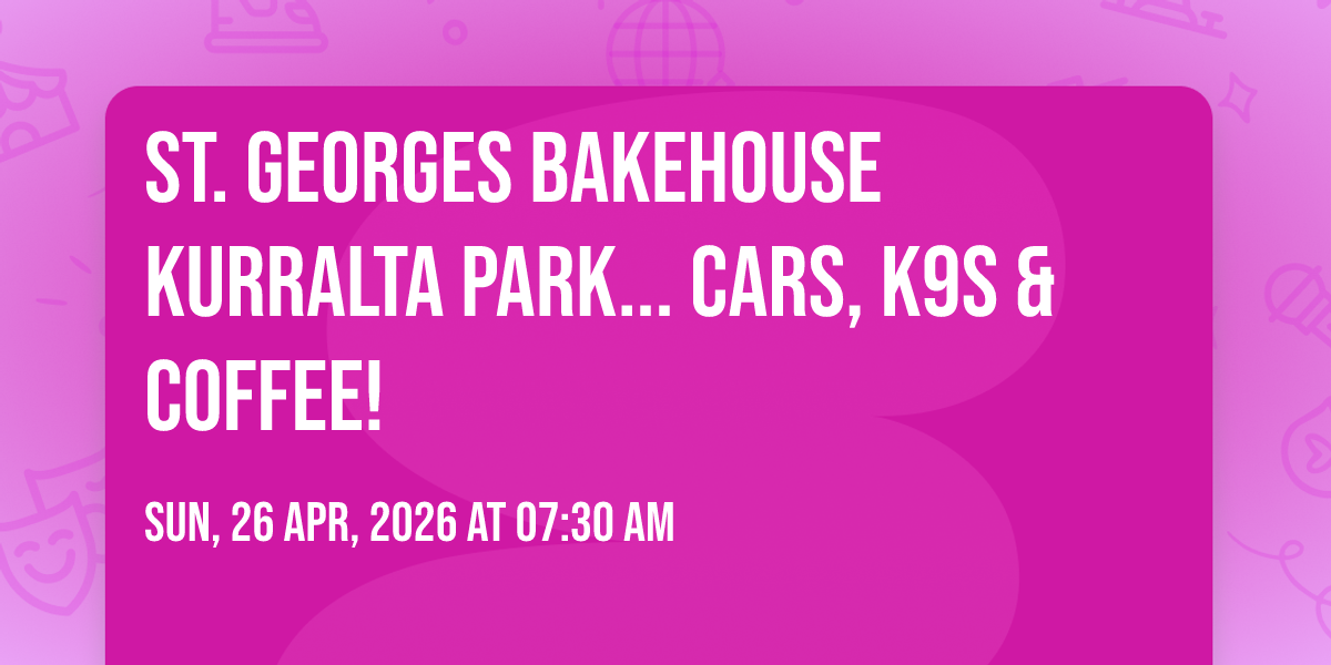 CHANGE OF LOCATION TO ST GEORGE'S BAKEHOUSE KURRALTA PARK come grab a delicious coffee, breakfast and support a local business!A car meet, where all types of cars are welcome, including 4 legged friends