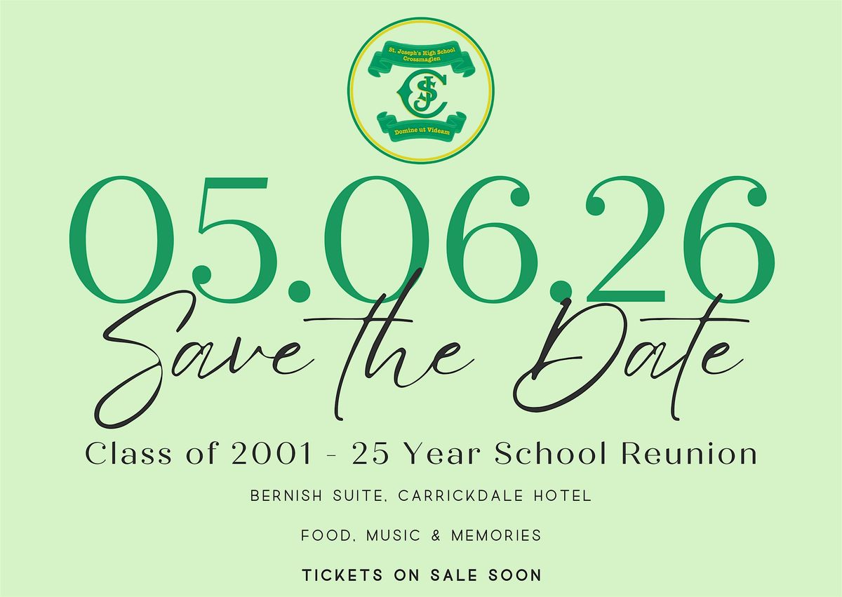 Get ready to party like it's 2001 with your old classmates from St Josephs High School - Crossmaglen's 25 Year reunion!