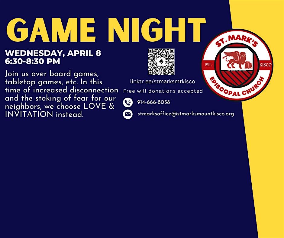 Join us at St. Mark's for a fun game night full of laughs, snacks, and good vibes in person!About this Event