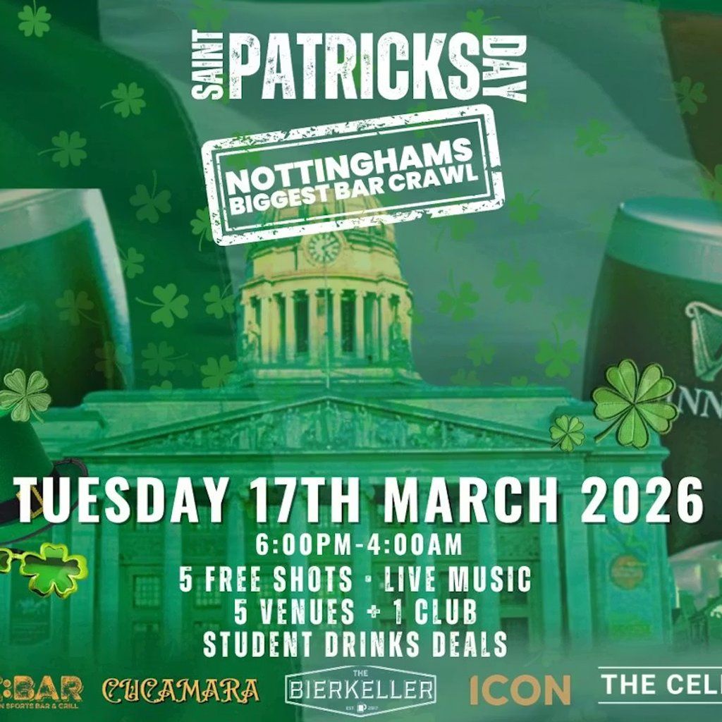 St Paddy's Day Bar Crawl 2026 - Nottingham | 5 FREE SHOTS | 5 VENUES | 2 CLUBS: UNIT 13/THE CELL