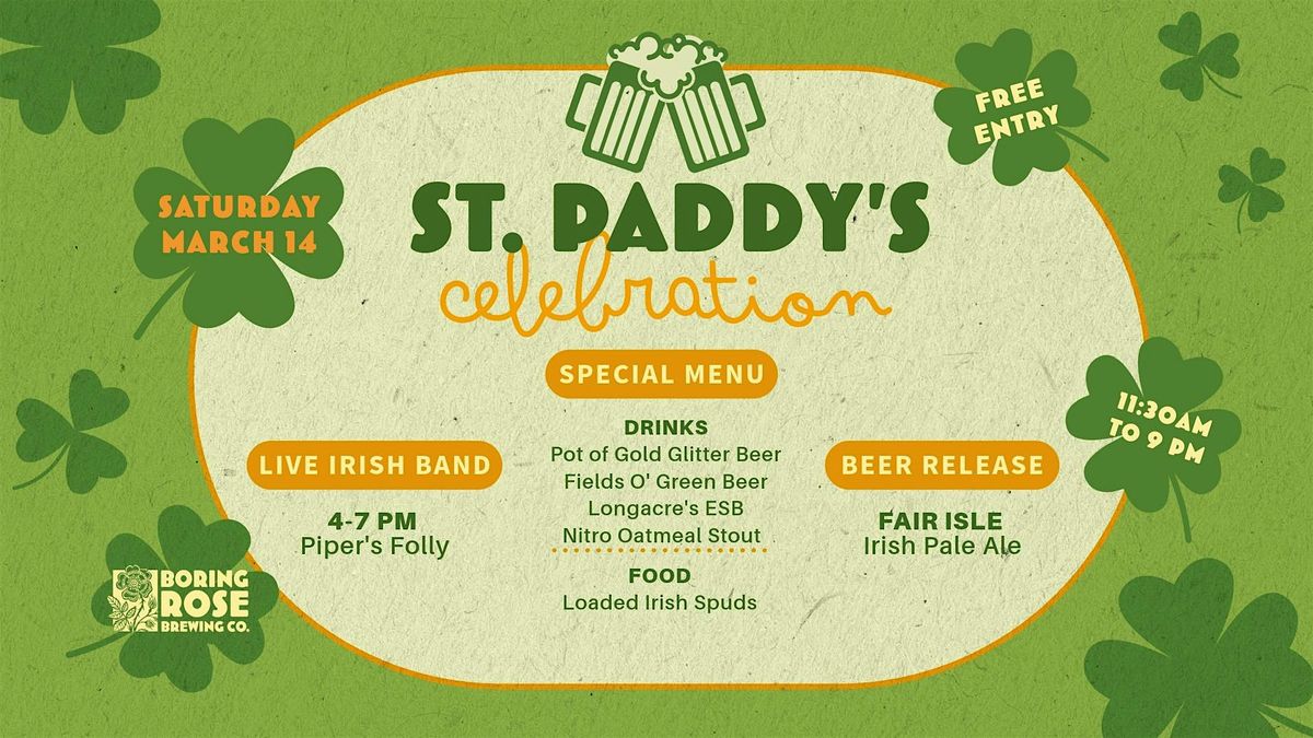 Celebrate St. Paddy’s Day and the luck o’ the Irish on Saturday, March 14 from 11:30 AM – 9 PM at Boring Rose Brewing Co. — the premier craft brewery in El Dorado Hills Town Center! 🍀