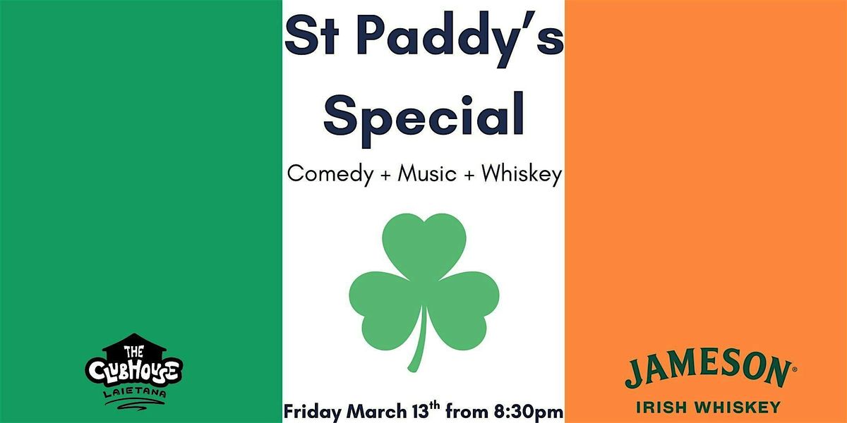 🍀 Grab tickets now for an unforgettable night of Comedy, Music & Vibes.
