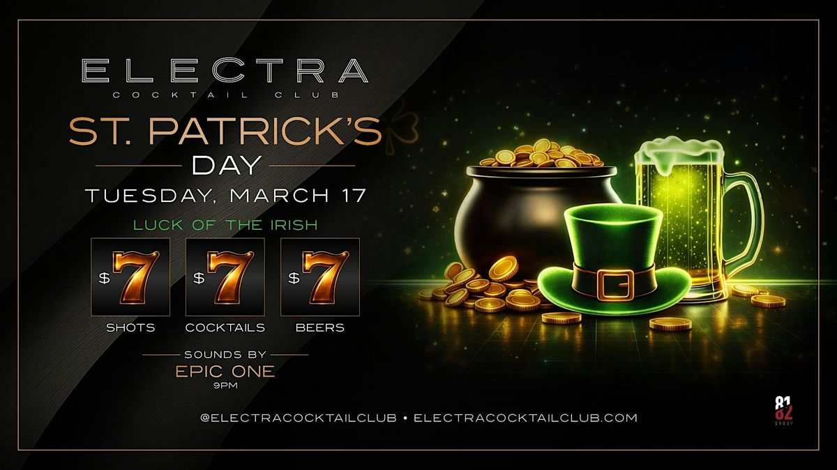 Join us this St. Patrick’s Day for an evening of a live DJ and epic drink specials all night long! Sip on $7 Green Beer, $7 Irish whiskey shots, and a $7 Irish whiskey cocktail while DJ Epic One plays the best of hip hop, R&B, Top 40, rock, and more from 9 PM to 2 AM.